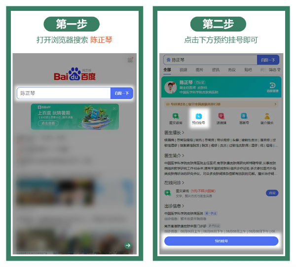 進(jìn)入預(yù)約掛號(hào)頁(yè)面,先根據(jù)自己的皮膚病癥選擇相應(yīng)的皮膚科細(xì)分科室,再在該科室的醫(yī)生列表中搜索 “陳正琴”。即可查看她的出診時(shí)間和剩余號(hào)源,選擇你想就診的日期和時(shí)段,點(diǎn)擊 “預(yù)約”。接下來(lái)填寫(xiě)患者的個(gè)人信息,包括姓名、身份證號(hào)、聯(lián)系電話等,填寫(xiě)完成后點(diǎn)擊 “確認(rèn)提交”。預(yù)約成功后,官網(wǎng)會(huì)顯示預(yù)約成功的頁(yè)面,同時(shí)你的手機(jī)也會(huì)收到短信通知,提醒你按時(shí)就診。