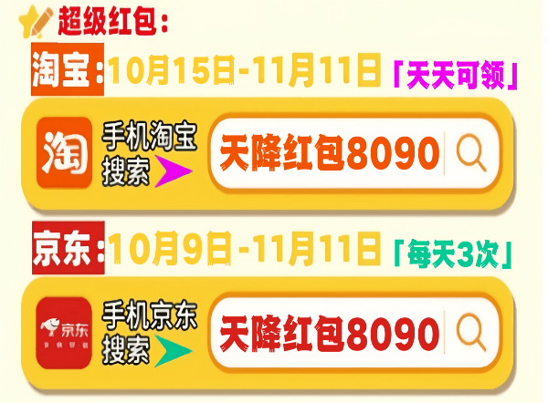 別再把11月11日當(dāng)成唯一戰(zhàn)場,2025年京東、淘寶、天貓集體把戰(zhàn)線拉長到37天,從10月9日一路狂歡到11月14日。想薅到全年最大羊毛,記住一句話:早動手、晚蹲點(diǎn)、紅包天天領(lǐng)!