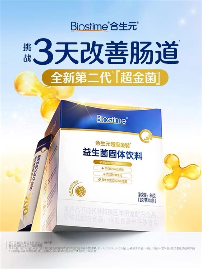對(duì)于學(xué)齡兒童來(lái)說(shuō),腸道菌群的穩(wěn)定與多樣性直接影響免疫系統(tǒng)的發(fā)育與功能。合生元超級(jí)金裝益生菌通過(guò)補(bǔ)充特定有益菌株,不僅有助于維持腸道菌群平衡,還能支持營(yíng)養(yǎng)吸收代謝,為孩子的腸道健康、免疫能力提供基礎(chǔ)保障,憑實(shí)力獲得3天有效改善腸道的認(rèn)證。特別是在開(kāi)學(xué)后集體生活與季節(jié)變換的雙重壓力下,益生菌的buff支持可以加分不少。