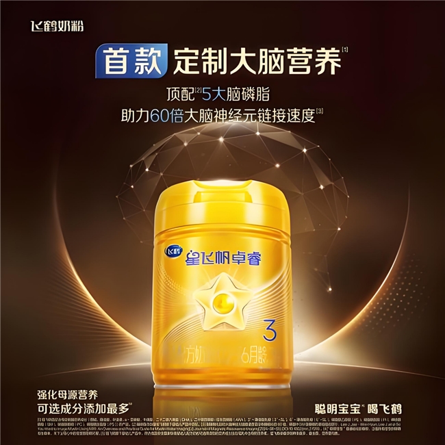 飛鶴星飛帆卓睿主打“腦智營養(yǎng)+腸道防御”雙體系,是飛鶴品牌中定位高端的代表作。