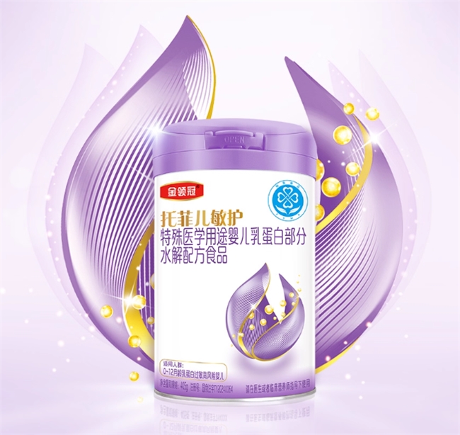金領(lǐng)冠托菲兒敏護(hù)是專為牛奶蛋白過敏高風(fēng)險寶寶設(shè)計的適度水解奶粉,已獲得中國特醫(yī)食品注冊(國食注字TY20240064),品質(zhì)和安全性有權(quán)威保障。
